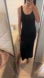 This chic black midi dress is a must-have for your wardrobe. Its sleek design offers a timeless and versatile look. Slightly see through with a worn look material.
