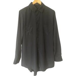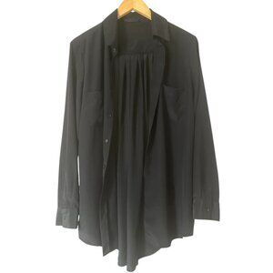 The Row Black Silk Button Down Shirt Size M Pleated Back Long Sleeves Semi-Sheer