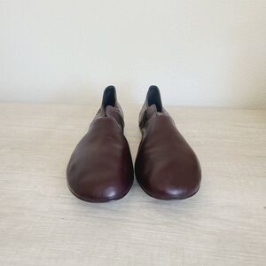 Elegant brown leather slip-on loafers. Perfect for any occasion. Practically new with out box. Still has sticker on sole. If you need more pictures let me know.