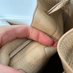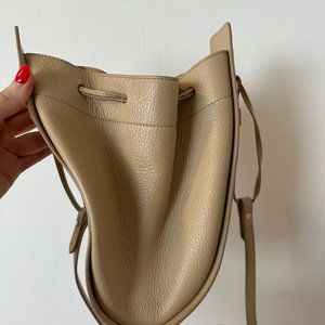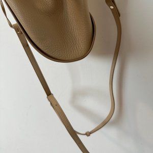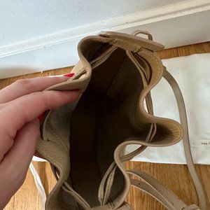 The Row Drawstring Pouch Bucket Bag Peebled Leather Beige Deerskin