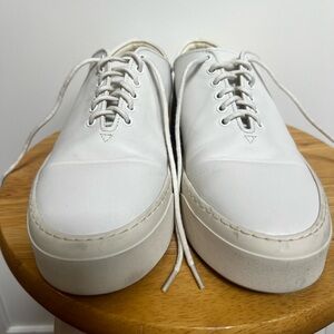 The Row Marie H very soft leather milk sneakers in size 37.5. Perfect for any casual occasion. They were worn once and they are in 99% pristine condition. They retailed for $820 plus tax and are sold out.