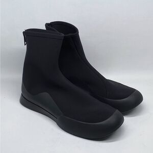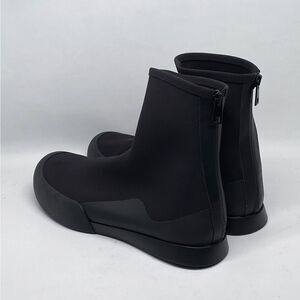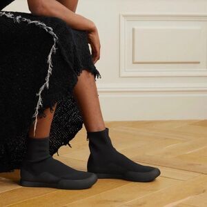 Embodying The Row's signature minimalist aesthetic, this sporty bootie features a stretchy sock-like upper and a glossy contrast sole.