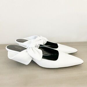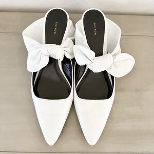 The Row White Leather Coco Bow Kitten Heel Mules. Size 40.