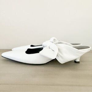 The Row White Leather Coco Bow Kitten Heel Mules sz 40
