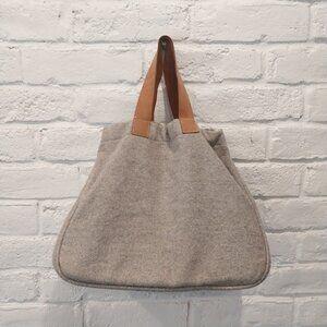 The Royal Standard Gray Wool Blend Large Tote Bag Purse 17" x 12" Leather Handle