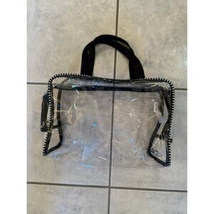 The Royal Standard NWT Clear Black White Handle Travel Makeup Zipper Bag, great condition, smoke free home, measurements in pics