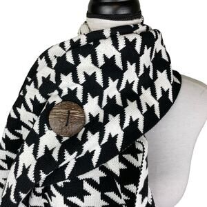 The Royal Standard NWT Cotton Black White Houndstooth Button Wrap Knit Scarf