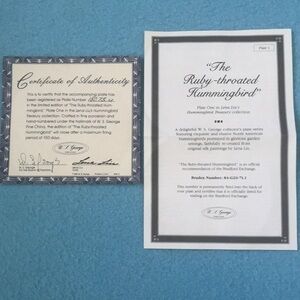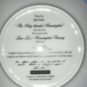 The Ruby-Throated Hummingbird by Lena Liu W. S. George Fine China circ. 1992 collectors porcelain plate vintage with authentication paperwork-plate # 18075U
