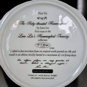 The Ruby-Throated Hummingbird, by Lena Liu-W. L. George Collector Plate the Plate Measuring 7.75"Diameter
