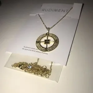 The Rudiment Chestnut is 14k gold plated with a pendant covered by crystal pave. Unworn!!