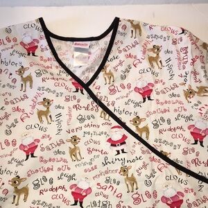 The Rudolph Co. Christmas Scrub Top with Santa and Rudolph