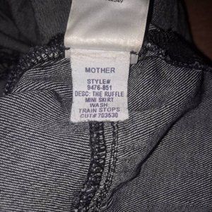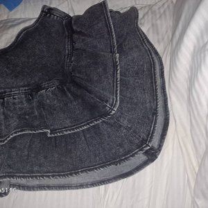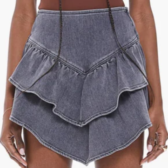 Like new, A playful mini skirt with a high rise, side zipper, snug waist and two V-shaped ruffles. Cut from stretch denim, Digging Up Dirt is a washed grey hue.