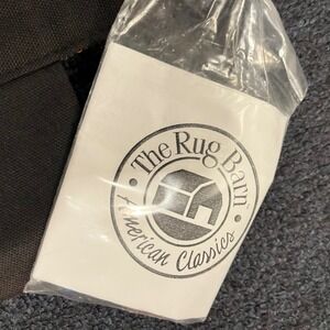 A captivating home decor accent: a wall tapestry from The Rug Barn, showcasing an artistic representation of African American women engaged in quilting. This square tapestry features a central image of four women, each depicted with distinctive clothing and headwear, gathered around a vibrant, colorful quilt. The image is bordered by an orange and black geometric patterned fabric. The tapestry is designed to be hung, with attached brown fabric tabs at the top. The back is lined with a solid brown fabric. The tapestry includes hardware for mounting.