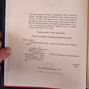 The Rush Limbaugh Story by Paul D. Colford Talent on Loan From God Hard Cover