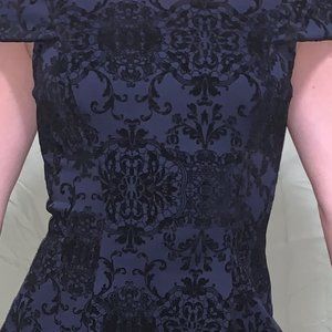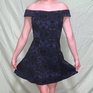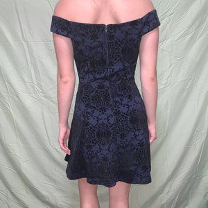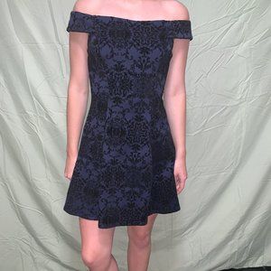 Off-the-Shoulder Navy Blue & Black Patterned Dress