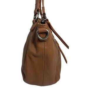 The SAK Cognac Brown Leather Hobo Shoulder Handbag Tote Top Zip NO STRAP