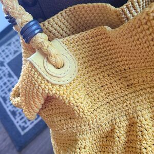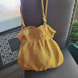 The SAK Crochet Shoulder Bag Purse Vintage Original Hand Woven Yellow Hobo Boho