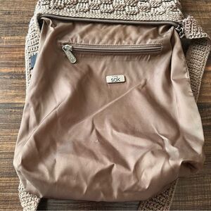 The SAK Handmade Tan/Beige Crochet Knit & Nylon Zip Top Shoulder Bag Handbag