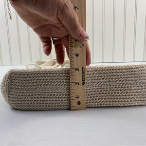 This elegant cream woven tote bag is perfect for any occasion. Its stylish design and neutral color make it a versatile accessory for your wardrobe. Very good preowned condition. No holes or stains. Color may vary slightly due to lighting. Please review photos closely for verification of condition and measurements. Please ask any questions before purchasing. Comes from a smoke free, pet free / but pet friendly home. If you have allergies, please ask.