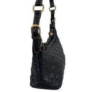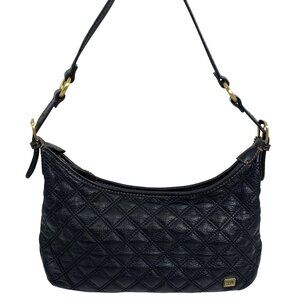 The SAK Puffy Quilted Black Leather Handbag Shoulder Bag w/ Bag Charm EUC