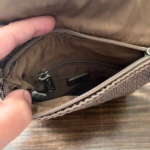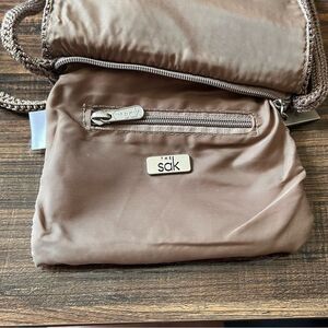 The SAK Tan Woven Square Zip Top with Flap Crossbody Shoulder Mini Bag Purse