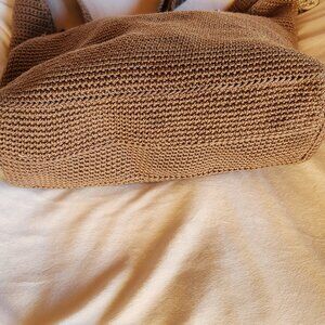 This is a great versatile Hobo bag; The Sak iconic crochet in brown with outside zipper, top zipper close and inside lining with another zipper pocket. Charm on outside. Has a few snags in crochet but does not affect use of bag.