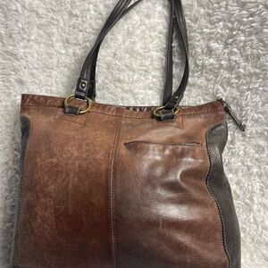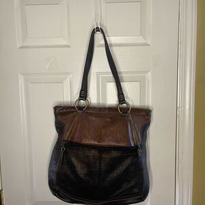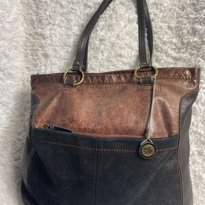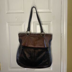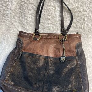 The SAK leather Brown two tone leather shoulder bag antique tone accent hardware