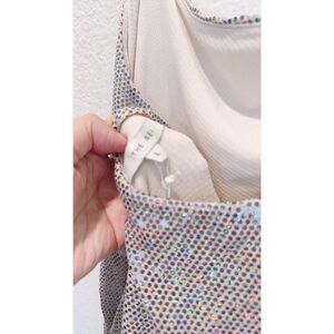 Stretch jersey fabric with sequin embellishments throughout and side seam slit