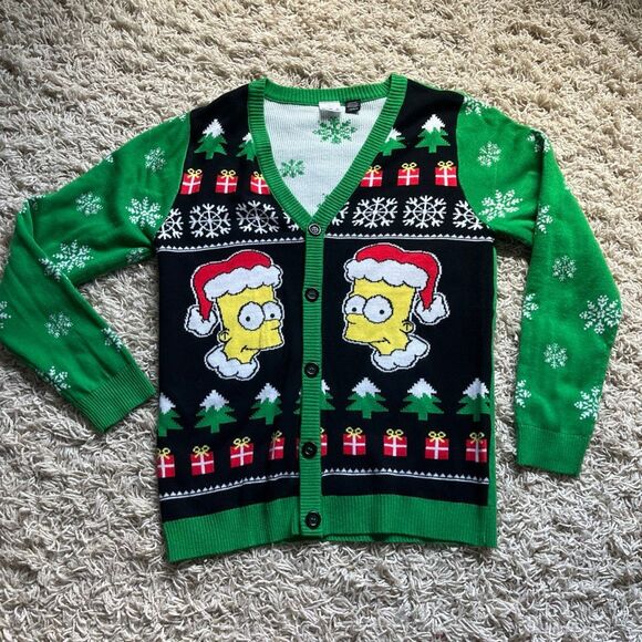 The SImpsons Santa Bart Ugly Christmas Cardigan Sweater Size Large EUC