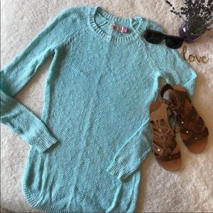SO brand knit sweater. Gorgeous color, loose knit for a light and soft feel. Soft and comfortable, pair with jean shorts for a beautiful evening stroll on the beach! Or leggings for casual comfortable day! EUC.