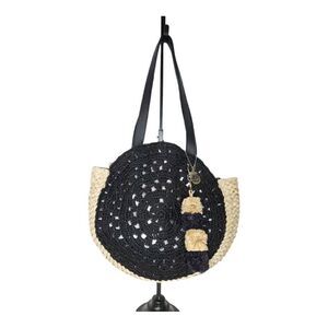 The Sak 30th Anniversary Black Crochet and Raffia Shoulder Purse Tote