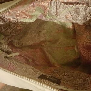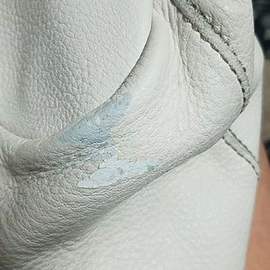 Demi shoulder bag. Off white genuine leather. No stains or tears to interior. Tiny flaw near bottom of purse (shown in last picture).