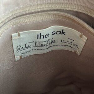 - Label inside names the individual who hand-crocheted the bag and on what date