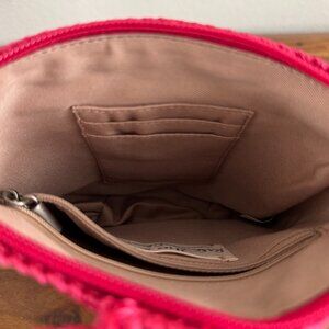 The Sak - Ayla Ring Handle Hand Crochet Flower Pouch in Magenta