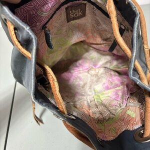 The Sak Backpack Drawstring Striped Leather Purse Bag Women's