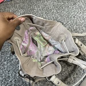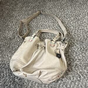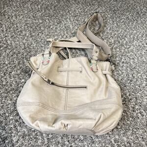 The Sak Bag Bucket Beige Natural Leather Drawstring Crossbody Hobo Purse New