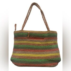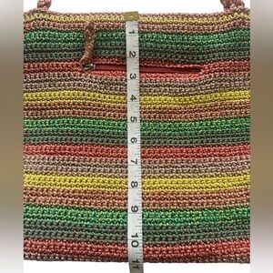 The Sak Belle Crochet Tote Striped Multicolor Boho Hippie Hobo Striped Knit Bag