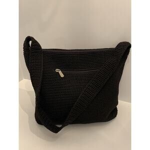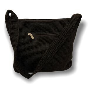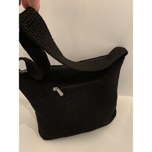 The Sak Black Crochet Shoulder Bag Zip Top Interior and Exterior Zip Pockets