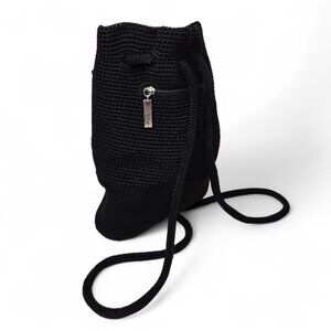 The Sak Black Crochet Small Back Pack Women's Cinch Top Rounded Strap Everyday.