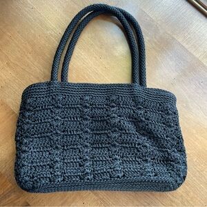 The Sak Black Crochet Woven Macrame Shoulder Bag