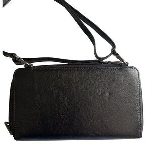 The Sak Black Leather Crossbody/Wristlet With Adjustable Strap & Zipper Closure