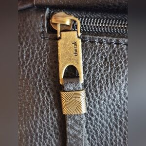 Material: Leather exterior and Repreve lining, made from recycled materials.