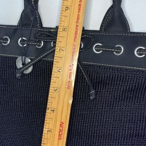 The Sak Black Open Crochet Mesh Eyelet Drawstring Dual Handle Satchel Bag