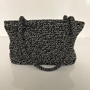 The Sak Black White Crochet Knit Small Purse Double Handles Lined Top Zipper