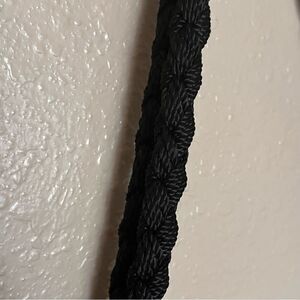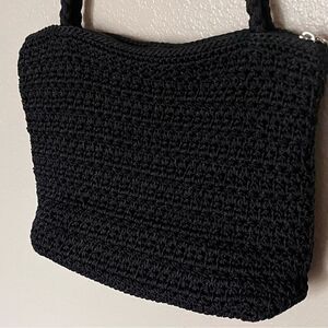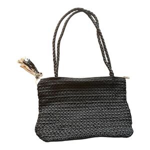 The Sak Black Woven Double Handle Purse Hand Bag with Zip Top and Tassel Accent