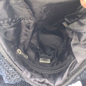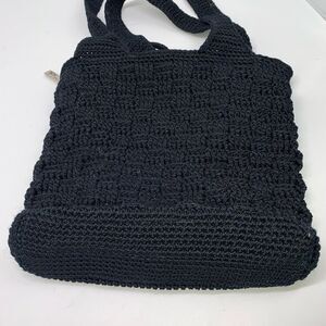 Nice simple all black purse with two straps. Some light fuzzies, wear to the handles. Overall in great condition.