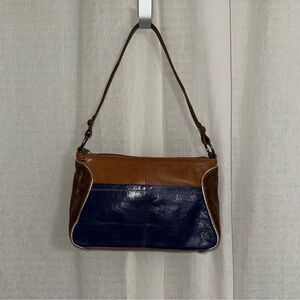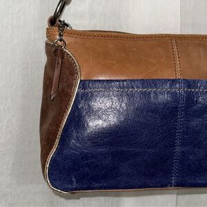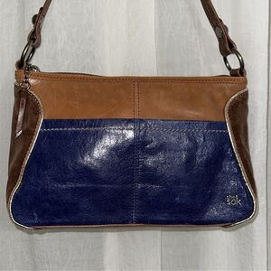 The Sak Blue Brown Gold Trim Genuine Leather Hobo Purse