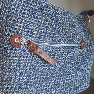 The Sak Blue Denim Crocheted Shoulder Bag Braided Strap Silver Metal Hardware
