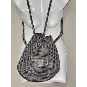 The Sak Bohemian Gray Crochet Drawstring Backpack Bucket Bag Purse is a stylish and versatile accessory for women. This medium-sized backpack features a gray crocheted exterior with a drawstring closure and silver hardware accents. The bohemian-inspired design makes it perfect for travel or casual occasions, while the lined interior and pockets provide practicality. With its double handles and vintage charm, this purse is ideal for those who appreciate a unique and on-trend piece. Like New