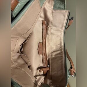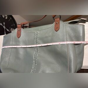 The Sak Bolinas Satchel Handbag, Sage Green Leather/Brown Leather Handles